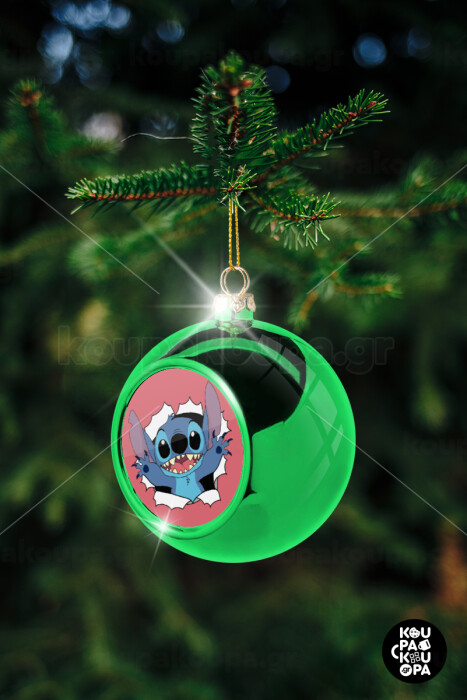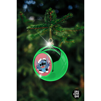 Stitch hello!!!, Green Christmas tree ornament ball 8cm