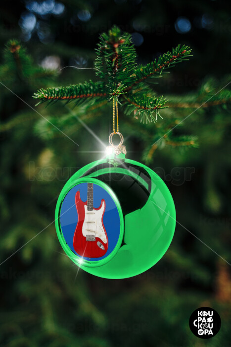 Guitar stratocaster, Green Christmas tree ornament ball 8cm