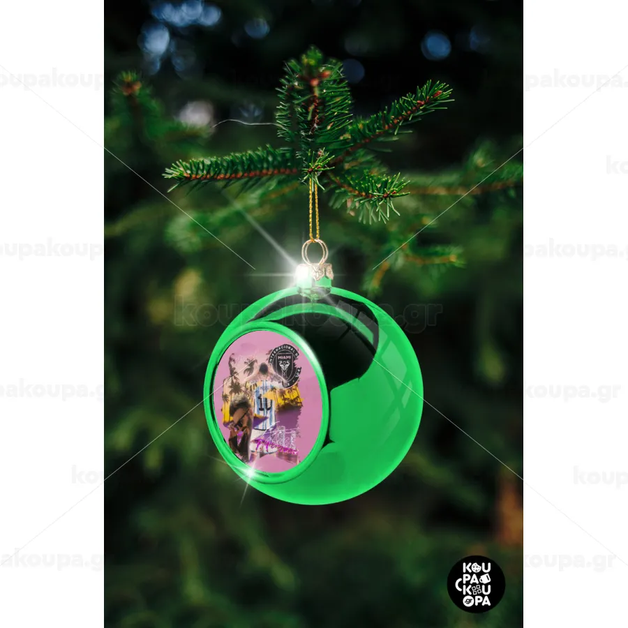 Lionel Messi Miami, Green Christmas tree ornament ball 8cm