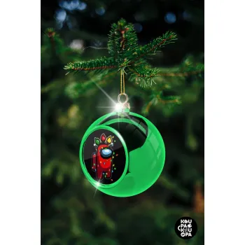 Among US xmas lights, Green Christmas tree ornament ball 8cm