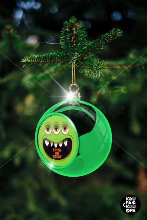 Halloween trick or treat 3 eyes monster, Green Christmas tree ornament ball 8cm