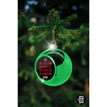 I .... YOU, binary secret MSG, Green Christmas tree ornament ball 8cm