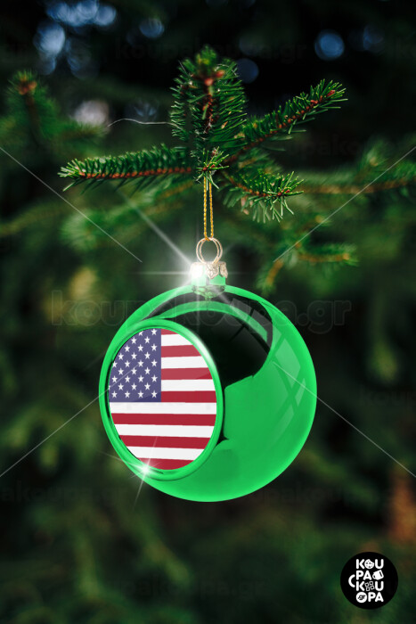 USA Flag, Green Christmas tree ornament ball 8cm
