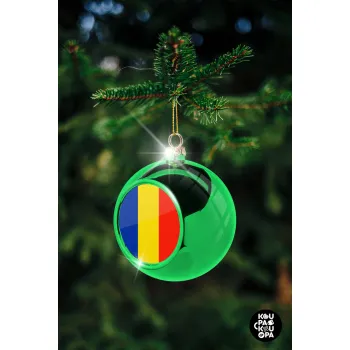 Romania flag, Green Christmas tree ornament ball 8cm