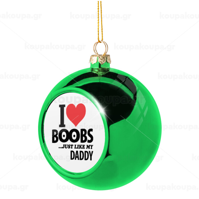 I Love boobs ...just like my daddy, Green Christmas tree ornament ball 8cm