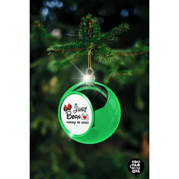 Just born already so loved, Green Christmas tree ornament ball 8cm