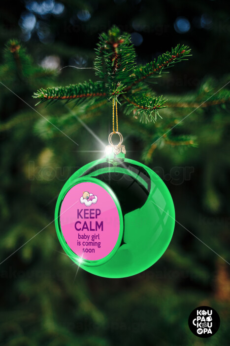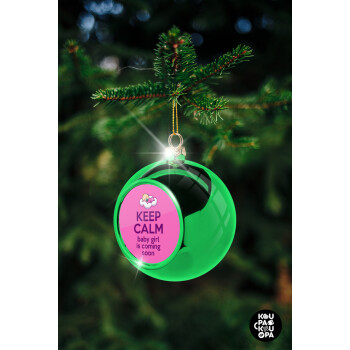 KEEP CALM baby girl is coming soon!!!, Green Christmas tree ornament ball 8cm