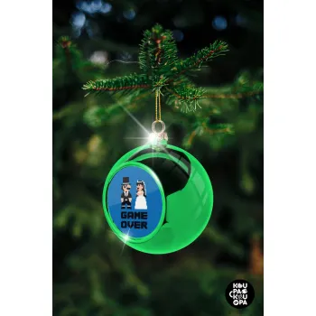 8bit Game Over Couple Wedding, Green Christmas tree ornament ball 8cm