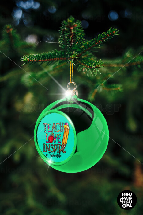 Teach, Love, Inspire, Green Christmas tree ornament ball 8cm