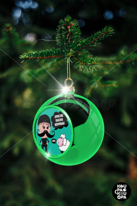 Κρητικός "Έρχεται Πάσχα κουράδι", Green Christmas tree ornament ball 8cm