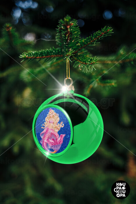 Barbie mermaid blue, Green Christmas tree ornament ball 8cm