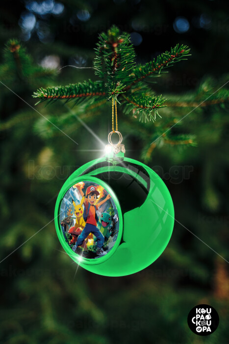 Ash Ketchum & Pikachu, Green Christmas tree ornament ball 8cm