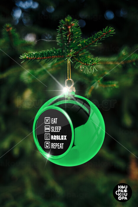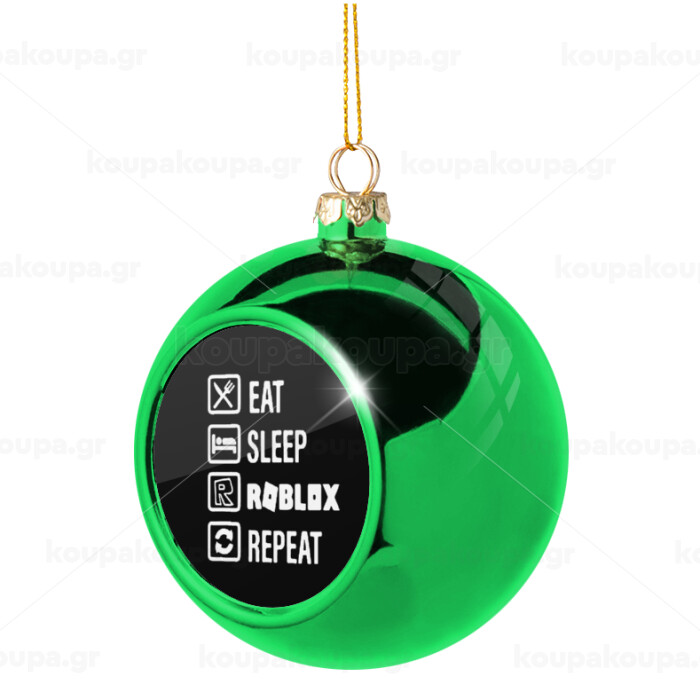 Eat, Sleep, Roblox, Repeat, Green Christmas tree ornament ball 8cm