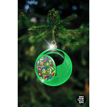 Pop art colorful seamless, Green Christmas tree ornament ball 8cm