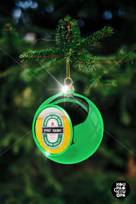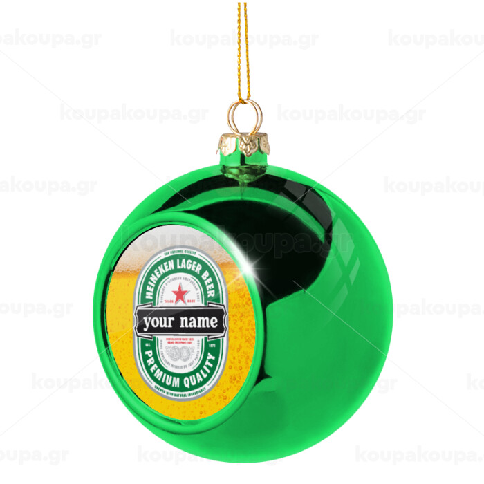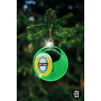 Heineken with name, Green Christmas tree ornament ball 8cm