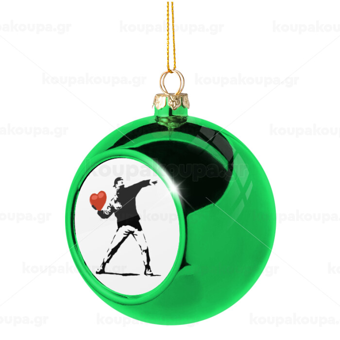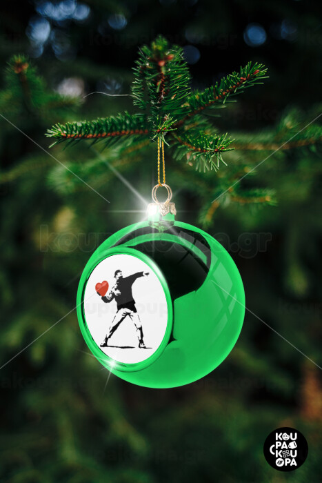 Banksy (The heart thrower), Green Christmas tree ornament ball 8cm
