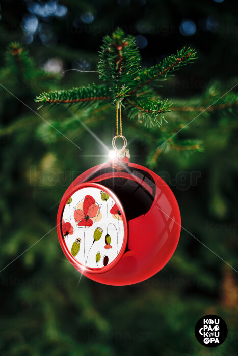 Red poppy flowers papaver, Christmas tree ball Red 8cm