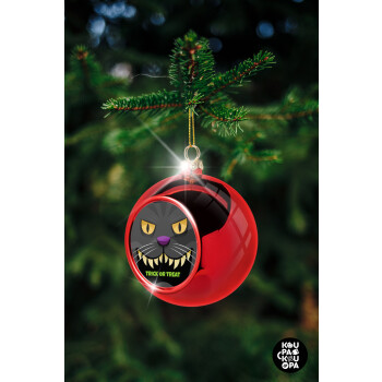 Halloween trick or treat Cat, Christmas tree ball Red 8cm