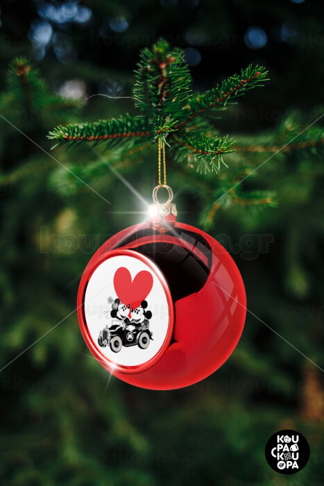 Mickey & Minnie love car, Christmas tree ball Red 8cm