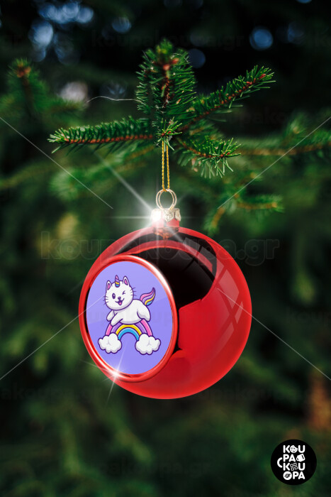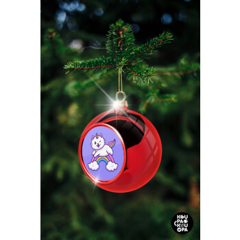 Cute cat unicorn, Christmas tree ball Red 8cm