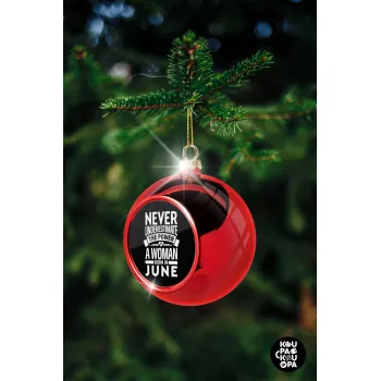 Never Underestimate the poer of a Woman born in..., Christmas tree ball Red 8cm
