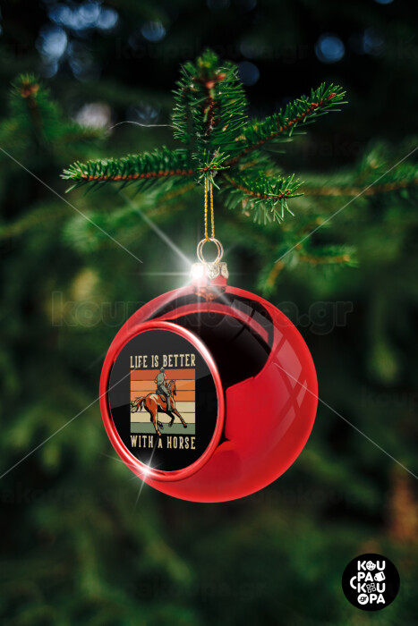 Life is Better with a Horse, Christmas tree ball Red 8cm