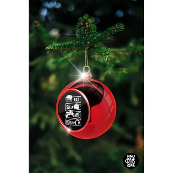 Eat Sleep Game Repeat, Christmas tree ball Red 8cm