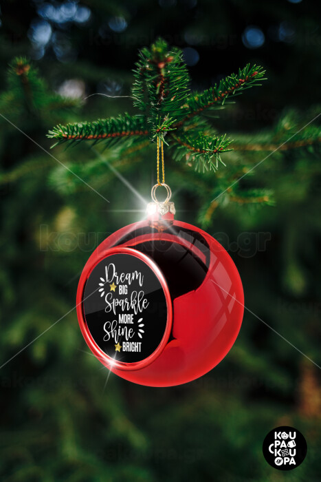Dream big, Sparkle more, Shine bright, Christmas tree ball Red 8cm