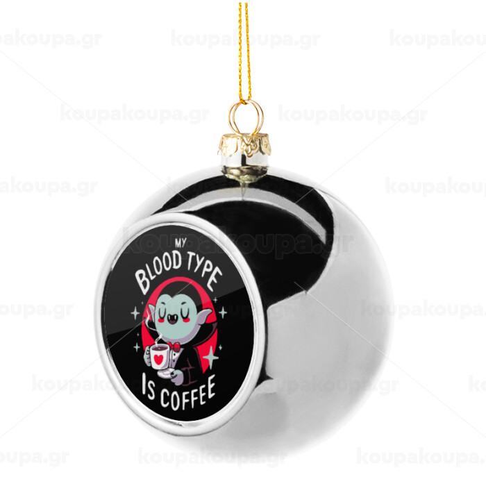 My blood type is coffee, Silver 8cm Christmas tree ball ornament