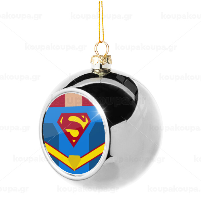 Superman flat, Silver 8cm Christmas tree ball ornament
