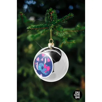 Lilo & Stitch hugs and hearts, Silver 8cm Christmas tree ball ornament