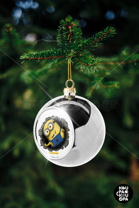 Minions hi, Silver 8cm Christmas tree ball ornament