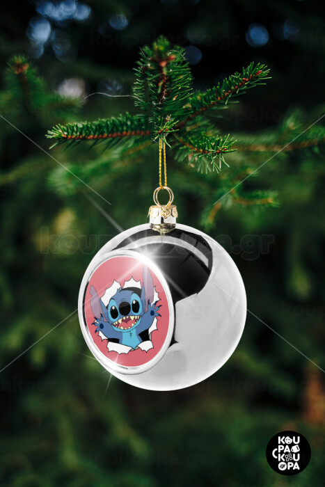 Stitch hello!!!, Silver 8cm Christmas tree ball ornament