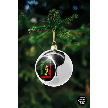 Bob marley, one love, Silver 8cm Christmas tree ball ornament