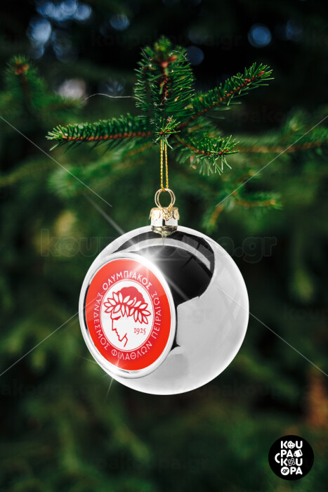 Ολυμπιακός, Silver 8cm Christmas tree ball ornament