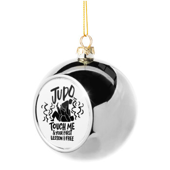 Judo Touch Me And Your First Lesson Is Free, Silver 8cm Christmas tree ball ornament