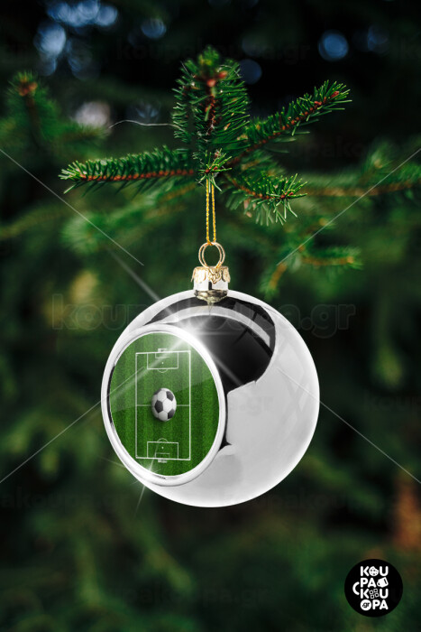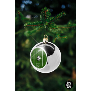 Soccer field, Γήπεδο ποδοσφαίρου, Silver 8cm Christmas tree ball ornament