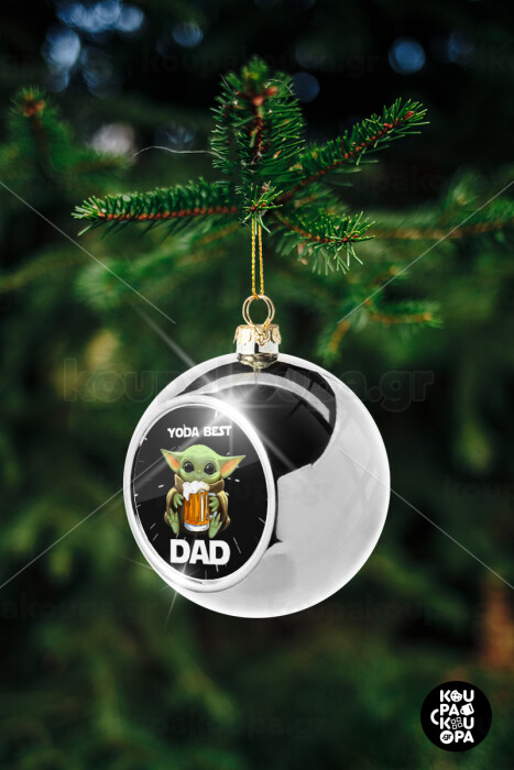 Yoda Best Dad, Silver 8cm Christmas tree ball ornament