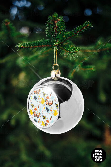 Πεταλούδες, Silver 8cm Christmas tree ball ornament