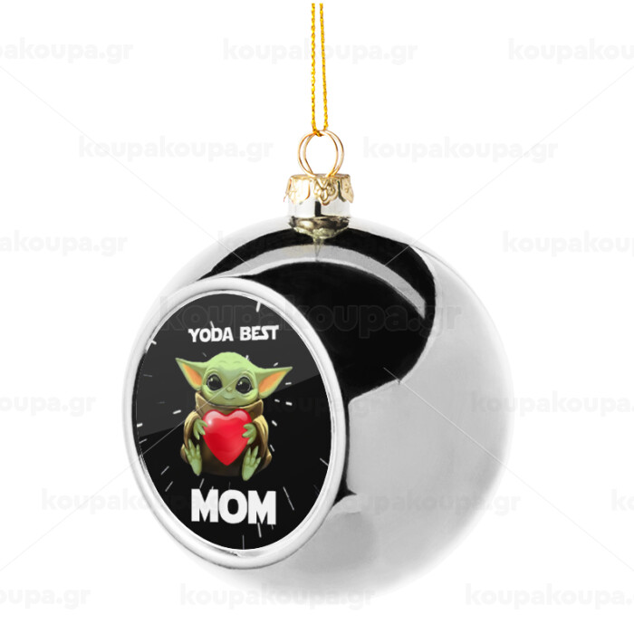 Yoda Best mom, Silver 8cm Christmas tree ball ornament