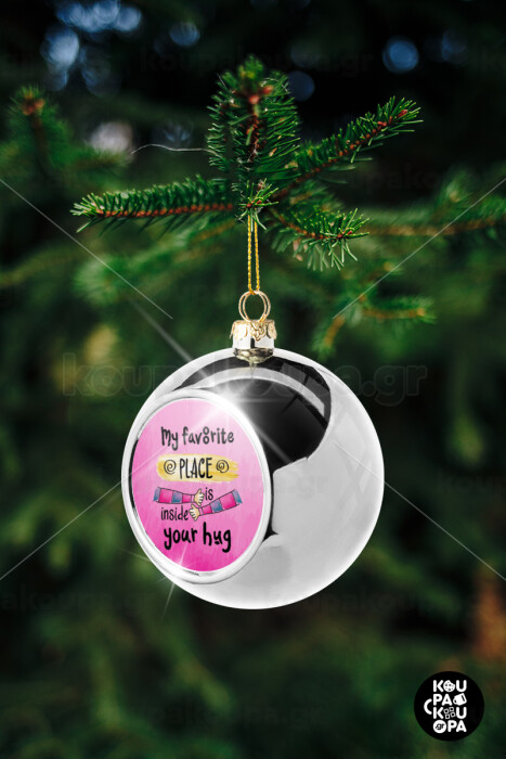My favorite place is inside your HUG, Silver 8cm Christmas tree ball ornament