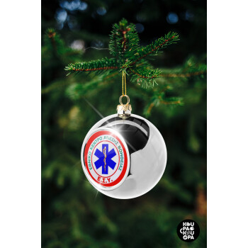 ΕΚΑΒ, Silver 8cm Christmas tree ball ornament