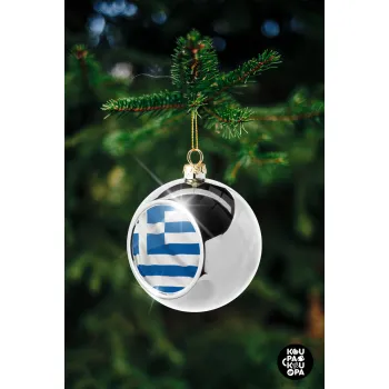 GREEK Flag, Silver 8cm Christmas tree ball ornament