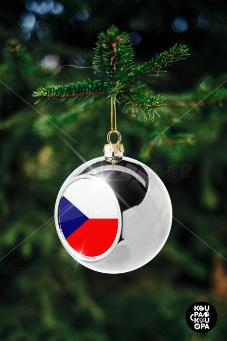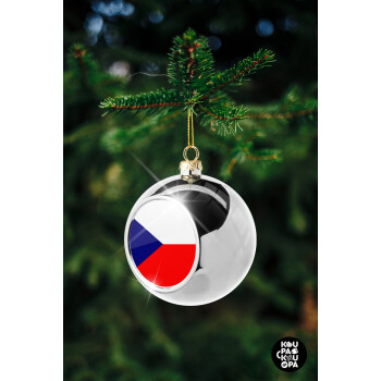 Czechia flag, Silver 8cm Christmas tree ball ornament
