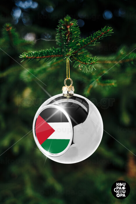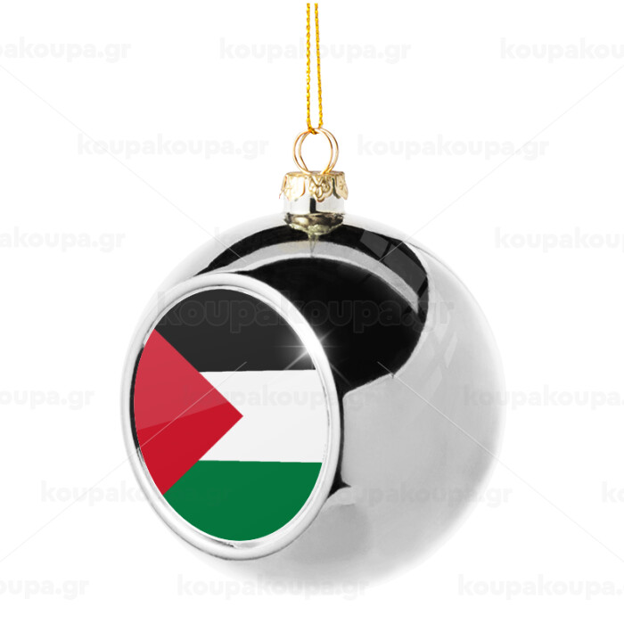 Palestine Flag, Silver 8cm Christmas tree ball ornament