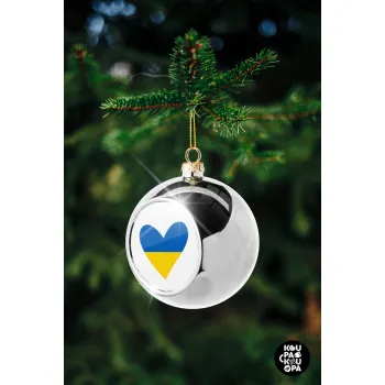 UKRAINE heart, Silver 8cm Christmas tree ball ornament