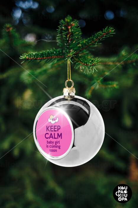 KEEP CALM baby girl is coming soon!!!, Silver 8cm Christmas tree ball ornament