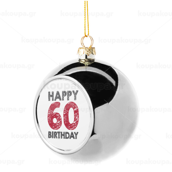 Happy 60 birthday!!!, Silver 8cm Christmas tree ball ornament