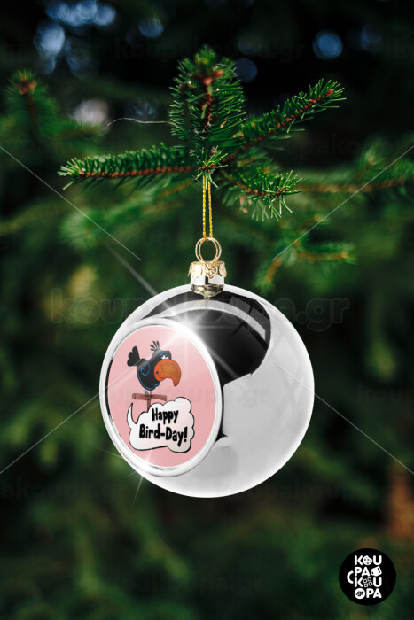 Happy Bird Day, Silver 8cm Christmas tree ball ornament