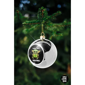 Yoda Best Teacher, Silver 8cm Christmas tree ball ornament